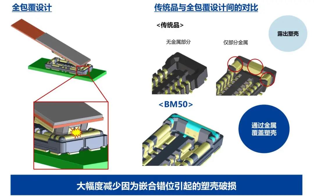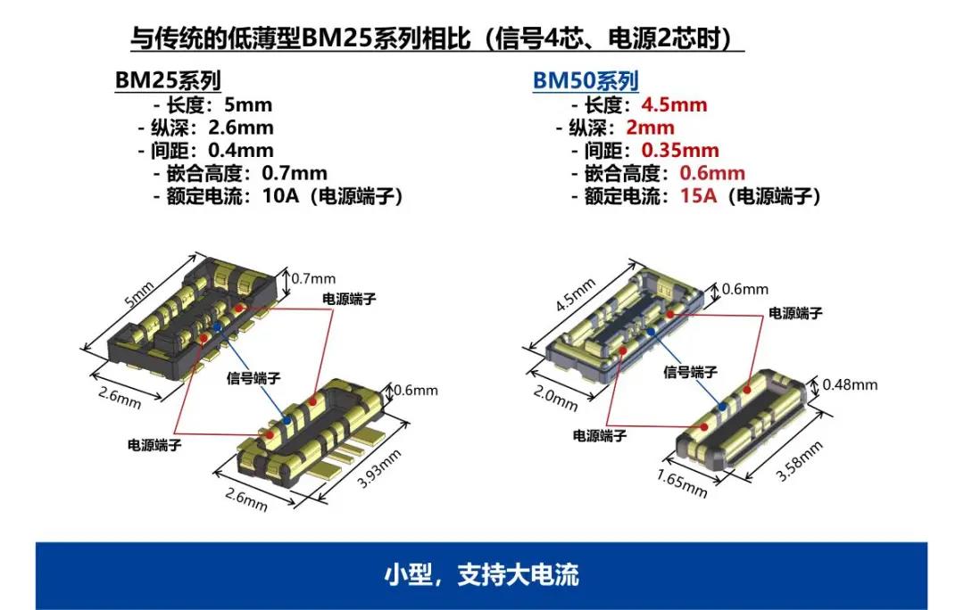 BM50 Series丨支持15A、小型全包覆、 電源?信號復(fù)合、板對FPC連接器