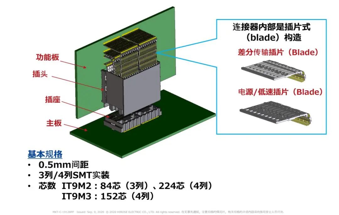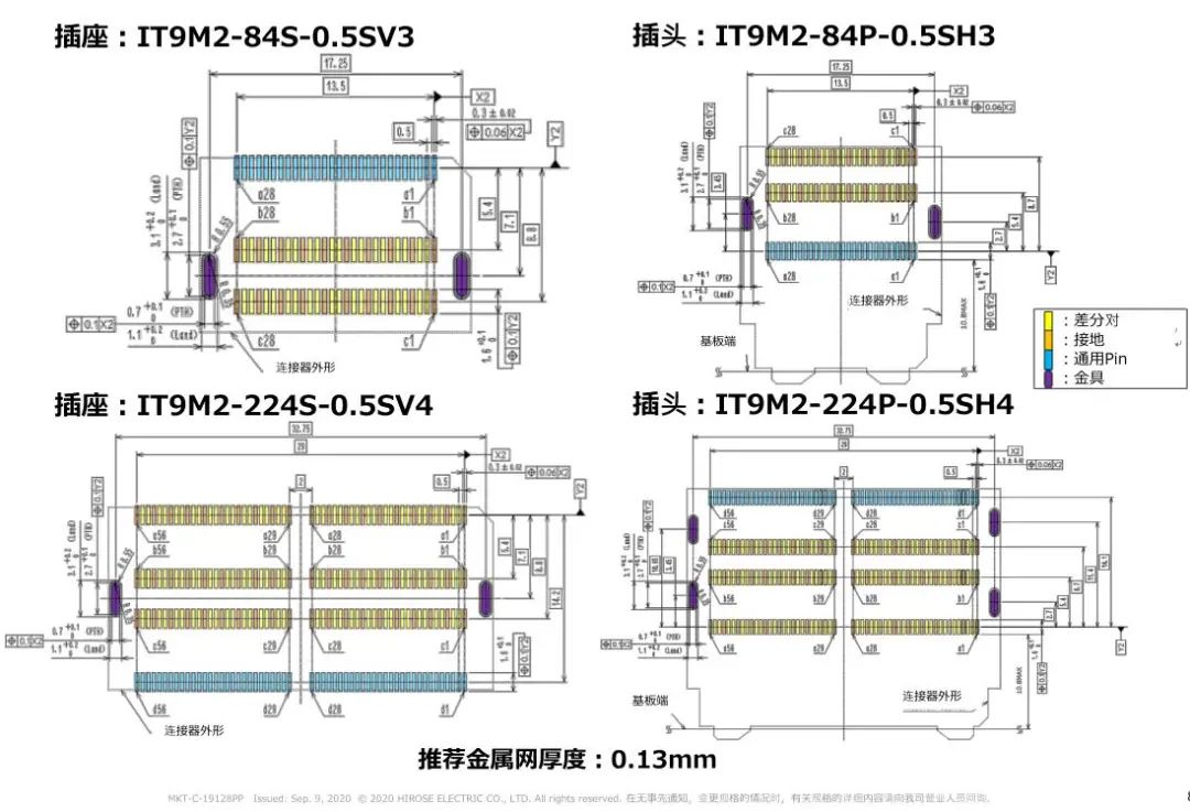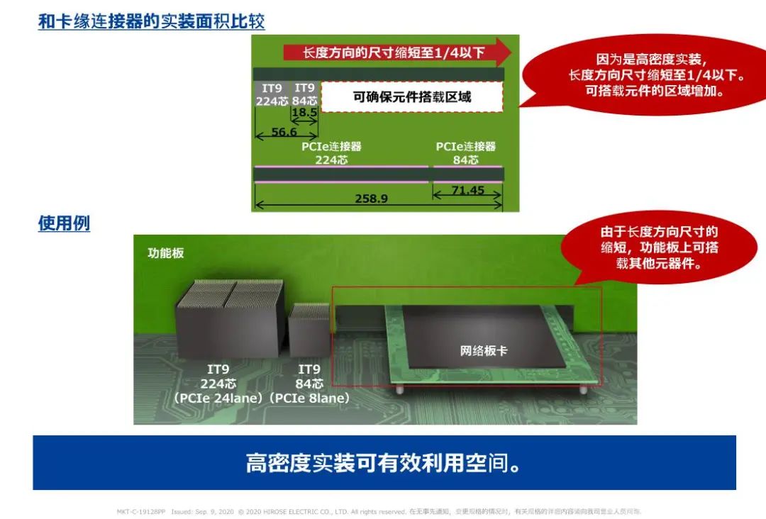 1 支持高速傳輸(28 + Gbps) 2 高密度: 50差分對/inch(224芯) 3 浮動構(gòu)造: 可以在同一基板上實裝多個連接器 4 選型 芯數(shù):84芯、152芯、224芯 對應(yīng)PCI Express 4.0/5.0